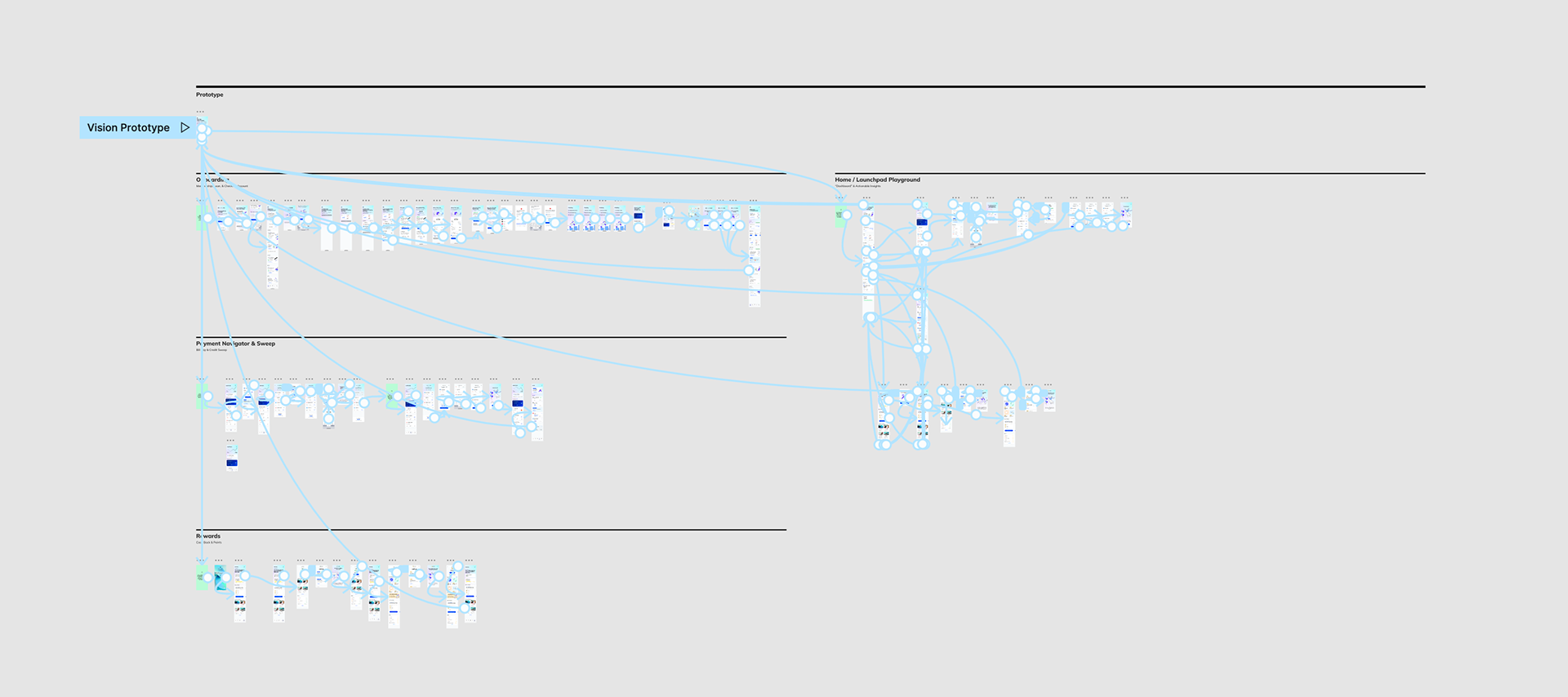 Typically during this phase, we would deliver a high-level vision prototype—meant more as a directional north star than a near-term build. But in this case, we went far beyond. We designed a fully clickable prototype that encompassed many of the core features and functionality envisioned for the product. We mapped detailed flows, interaction patterns, and UX decisions that were comprehensive enough to hand off to engineering with only a few alternate states remaining.